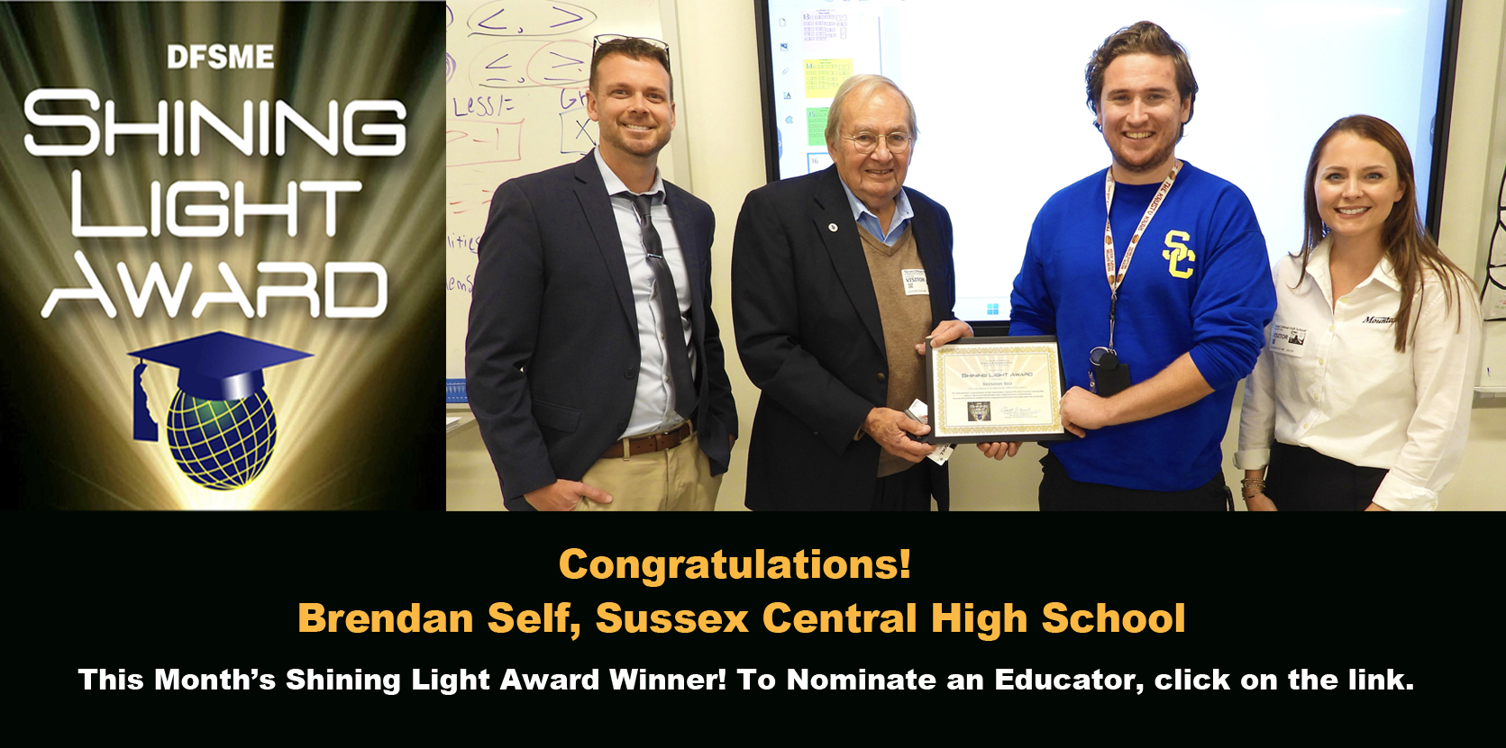DFSME’s December’s “Shining Light Award” Honors Brendan Self, Mathematics & Science Educator at Sussex Central High School